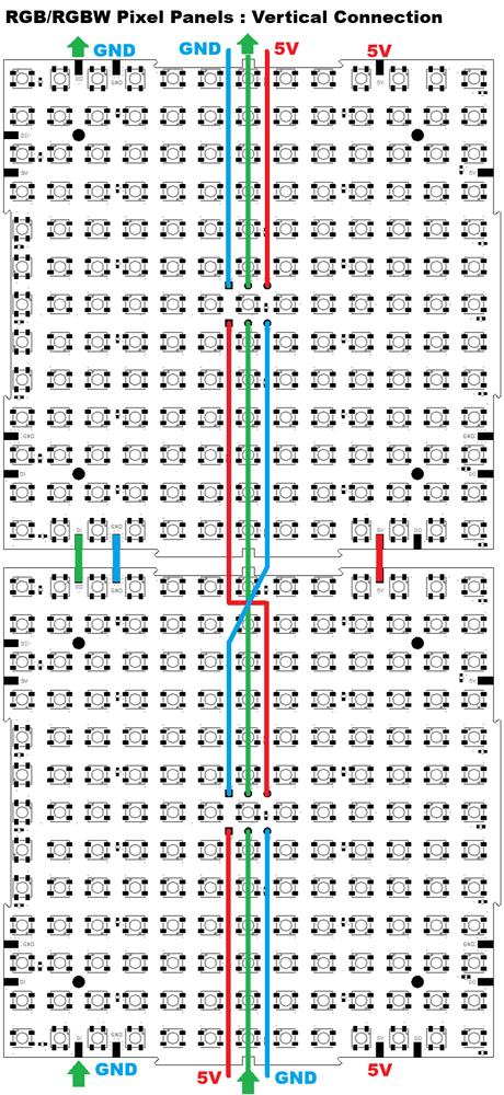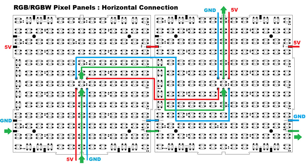 There are several options for powering, passing pixel data in, passing pixel data from panel to panel, and last pixel data out.